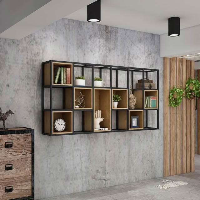 工業風鐵藝牆上置物架 多層書架 實木牆面壁掛置物架 餐廳裝飾展示架 loft儲物架子