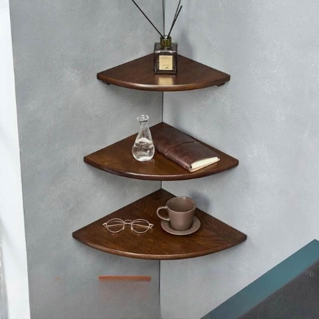 實木扇形木板 牆角牆上置物架 衣櫃轉角三角形隔板 壁掛廚房置物架 拐角直角置物架