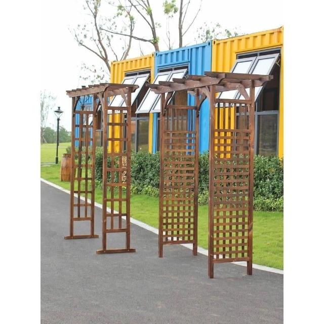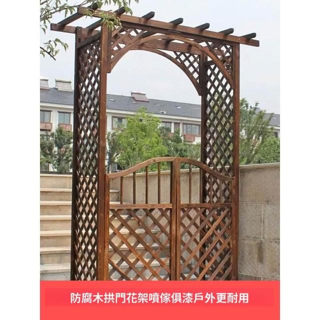 戶外庭院裝飾門 防腐木花園門 碳化葡萄架 半圓網格花架子 拱形爬藤拱門