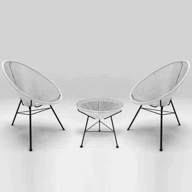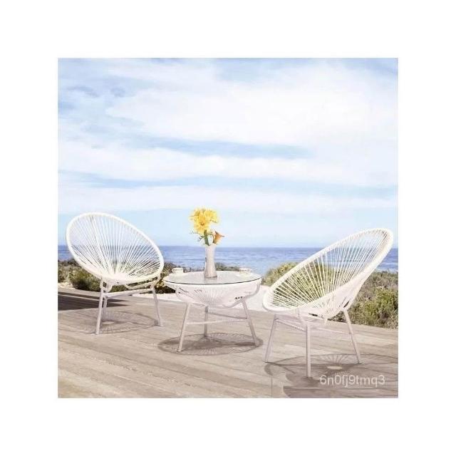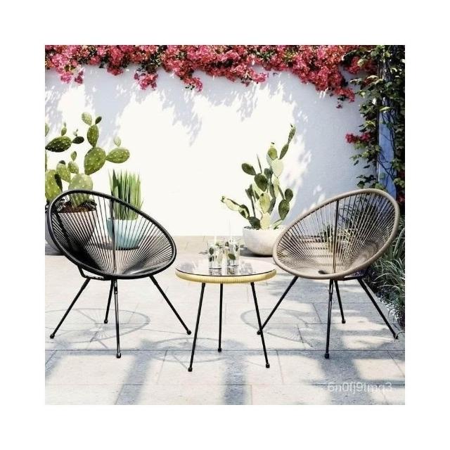 免運#北歐陽臺蛋形藤椅組閤簡約懶人椅茶幾庭院室外天臺花園戶外鐵藝 7YRE