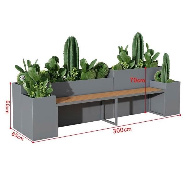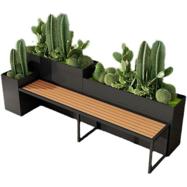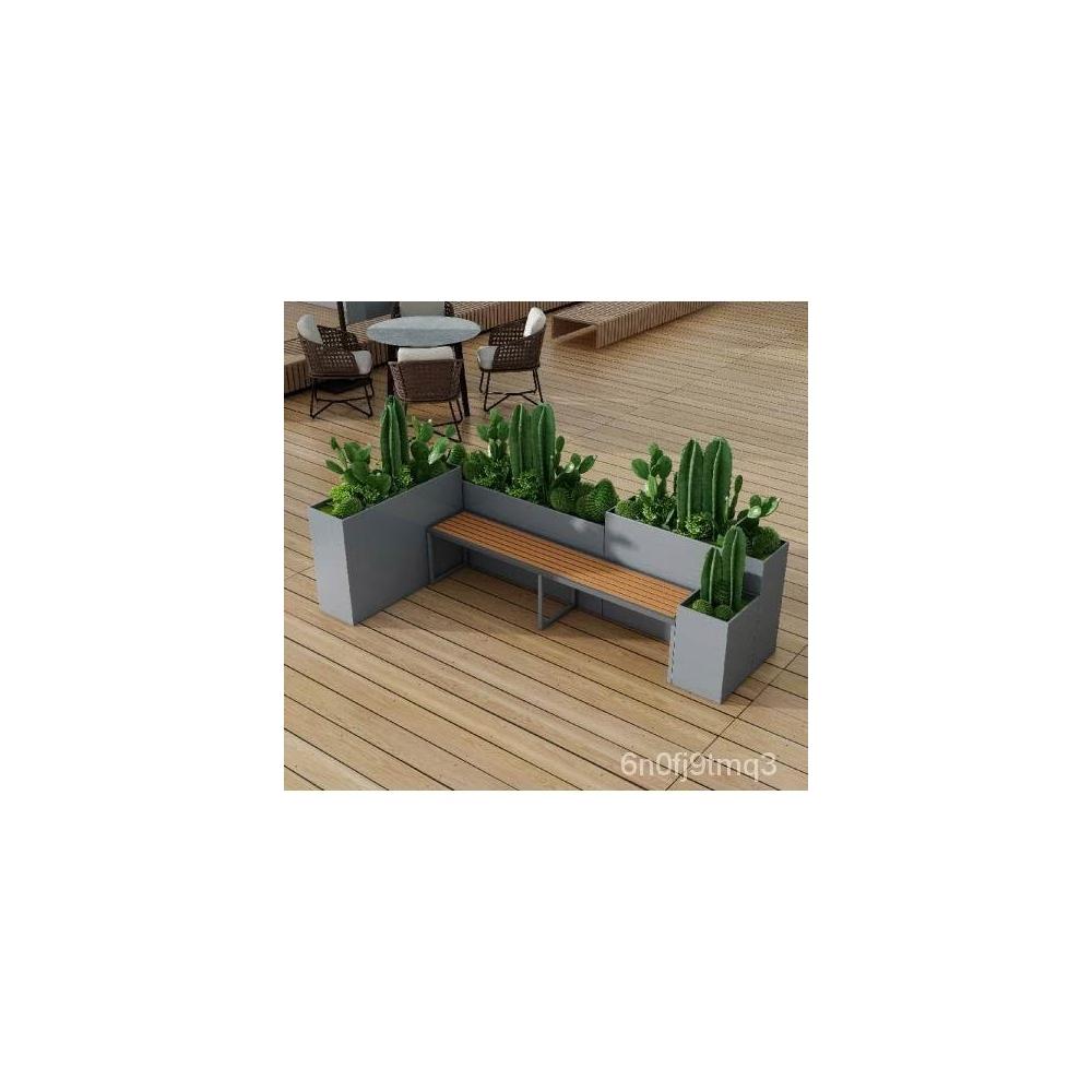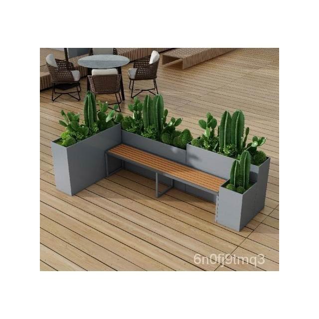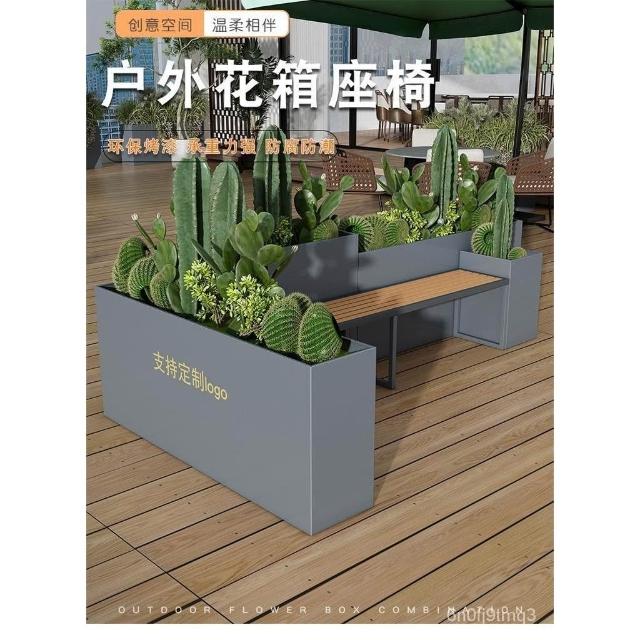 免運#戶外不銹鋼坐凳花箱商場花池室外座椅組閤花墰鐵藝種植槽隔斷花架 HXFL