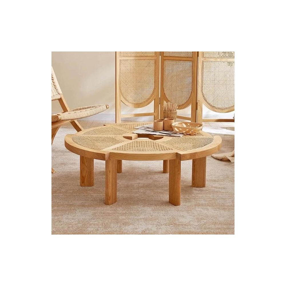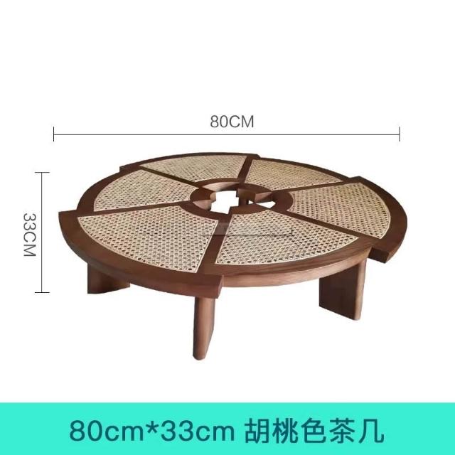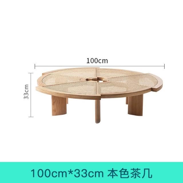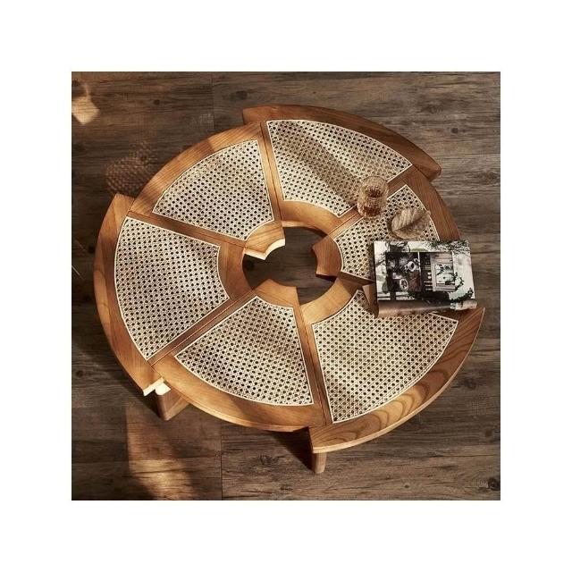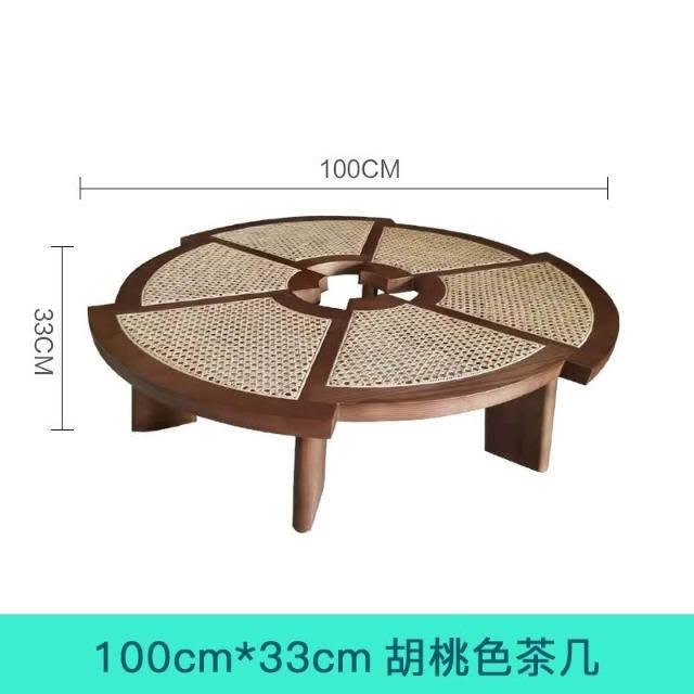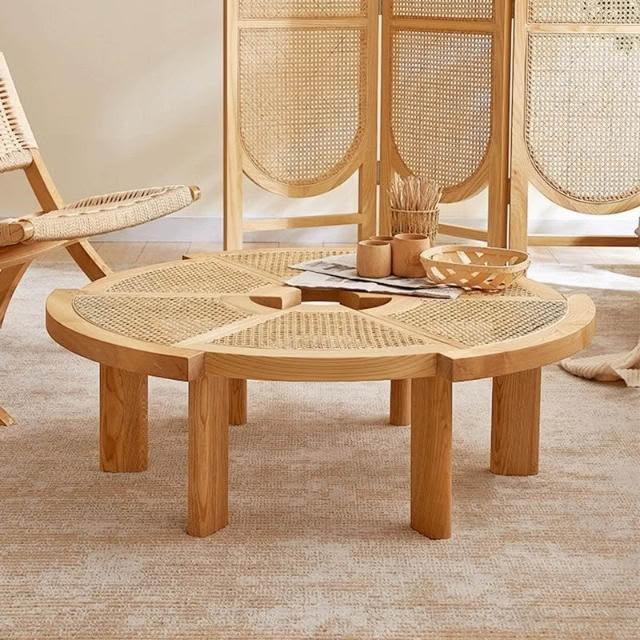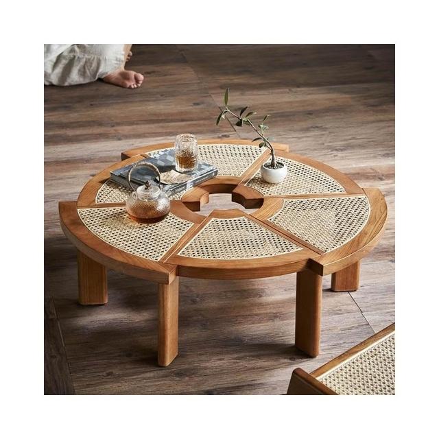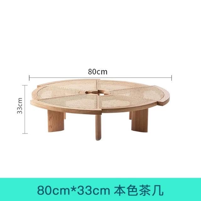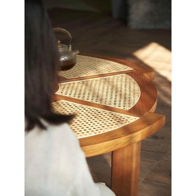 茶几 藤編茶幾 邊幾 藤编客厅小户型创意茶几实木家用侘寂风齿轮矮桌圆形日式异形茶台