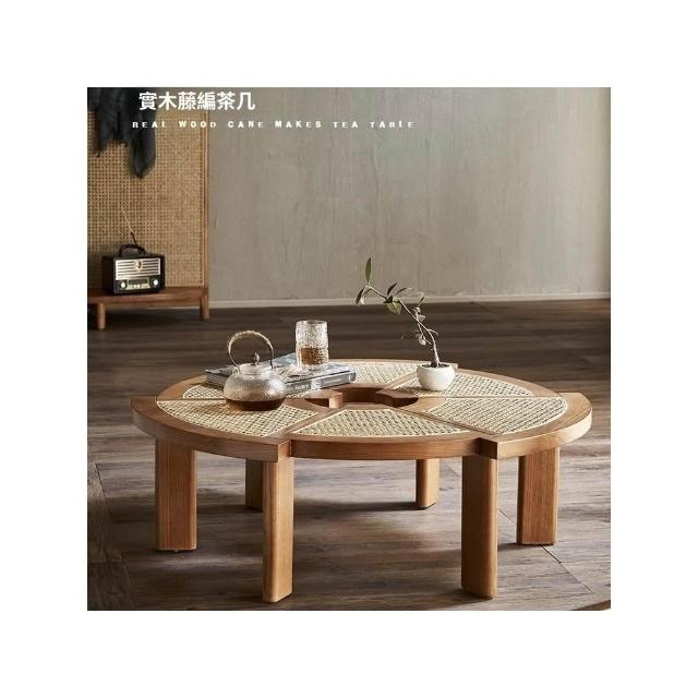 茶几 藤編茶幾 邊幾 藤编客厅小户型创意茶几实木家用侘寂风齿轮矮桌圆形日式异形茶台