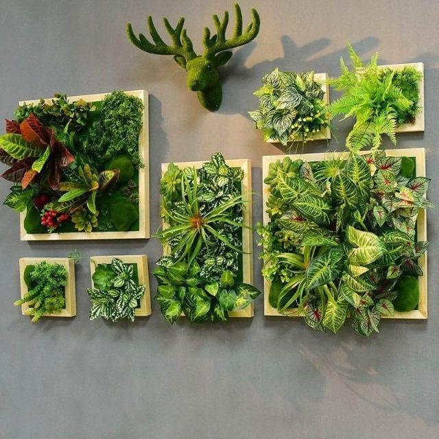 仿真綠植相框 仿真多肉綠植裝飾框 绿植背景墙 植物墻 假花 牆壁裝飾 3D立體牆飾 鹿头壁挂 北歐植物壁貼