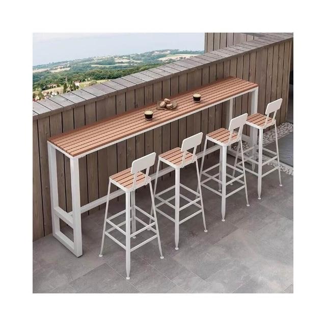 可開發票 戶外吧檯桌椅室外防腐防曬防水靠牆高腳桌咖啡店露台長條桌椅組合 室外長條桌 戶外桌子