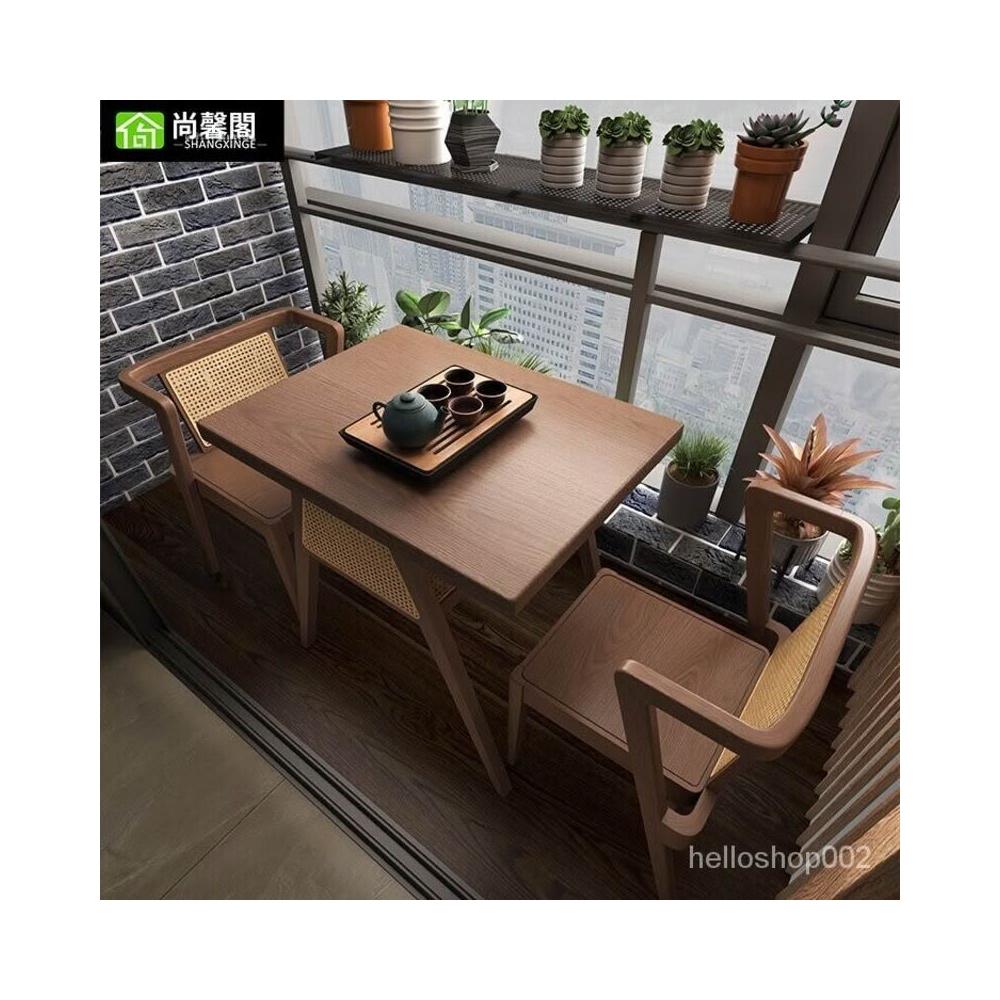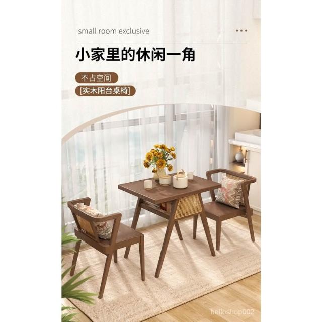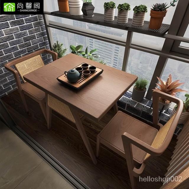 可開發票【免運】陽臺茶桌椅組閤洽談休閒桌三件套傢用實木小茶桌小型茶臺桌 實木藤編桌 日式民宿 桌 餐桌