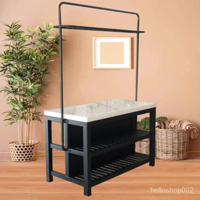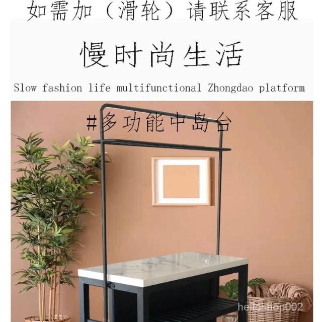 可開發票【免運】北歐現代開放式大理石廚房中島料理臺鐵藝餐桌一體可移動吧臺桌櫃
