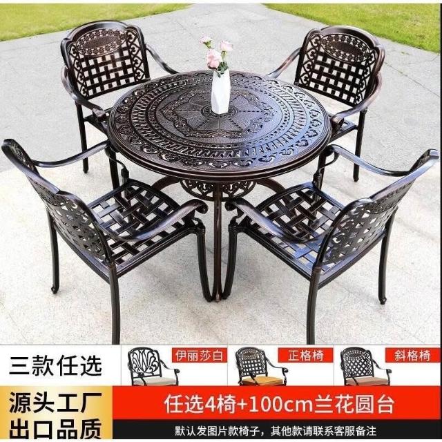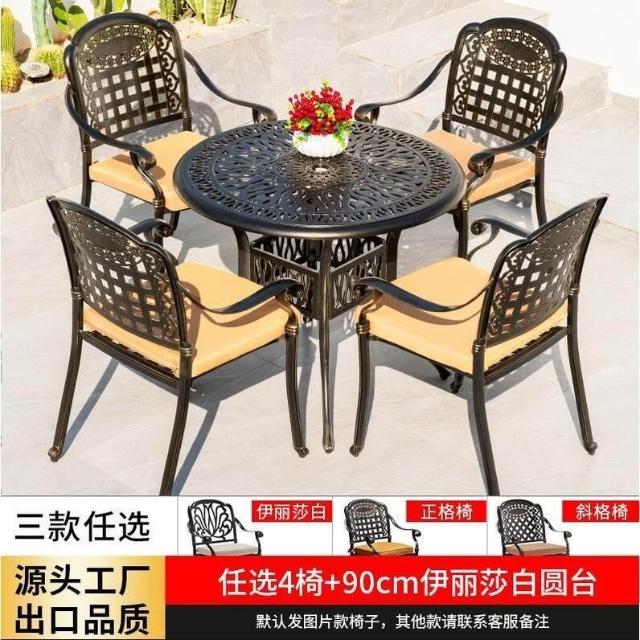 可開發票【免運】戶外桌椅鑄鋁三五件套陽臺花園庭院休閒露天室外防水鐵藝桌椅組閤 休閒桌椅 陽臺小桌椅
