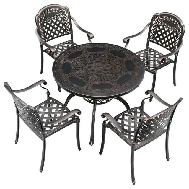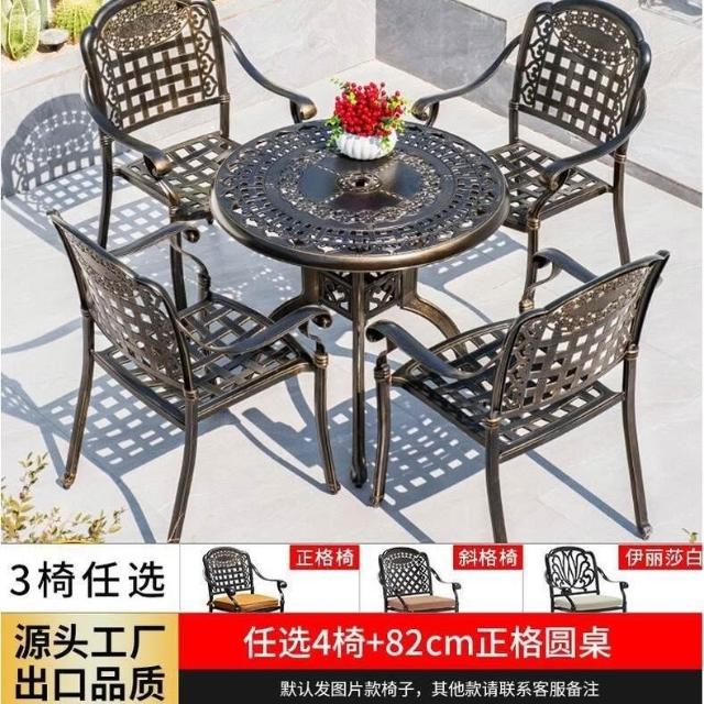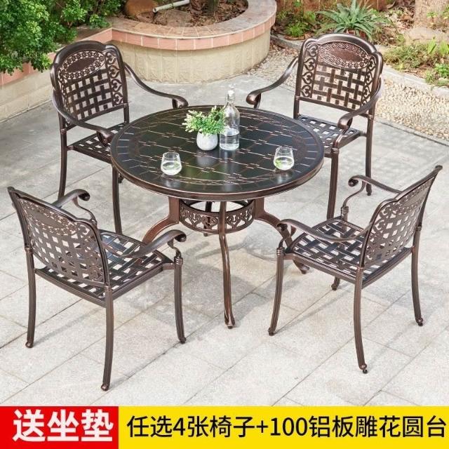 可開發票【免運】戶外桌椅鑄鋁三五件套陽臺花園庭院休閒露天室外防水鐵藝桌椅組閤 休閒桌椅 陽臺小桌椅