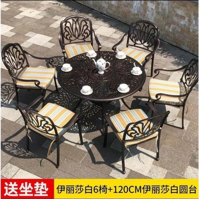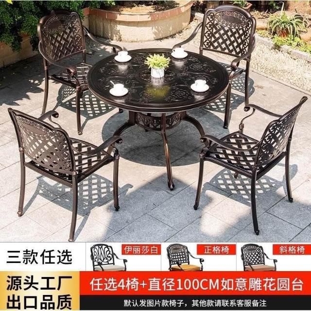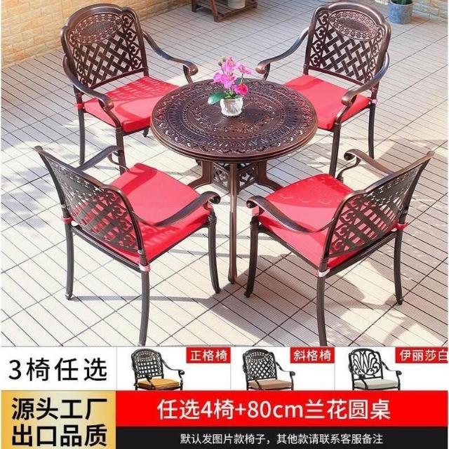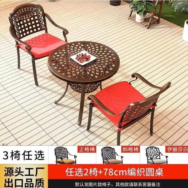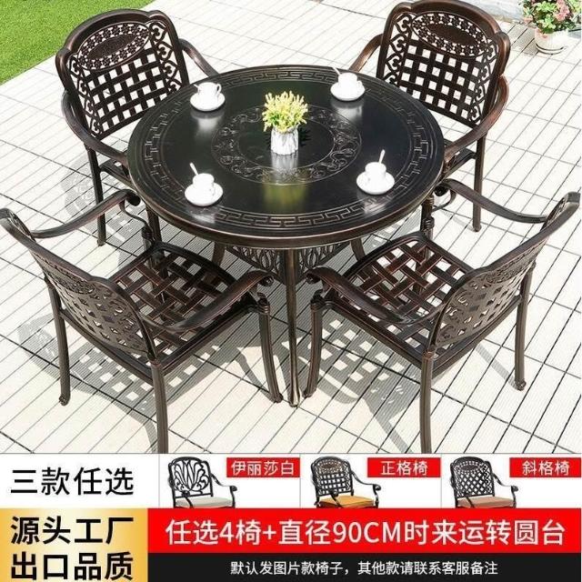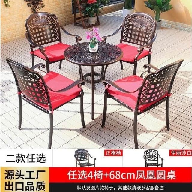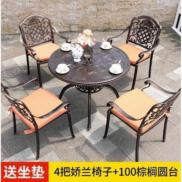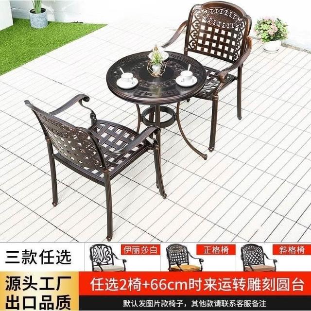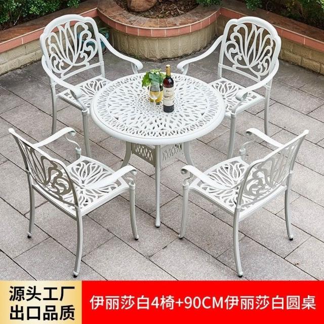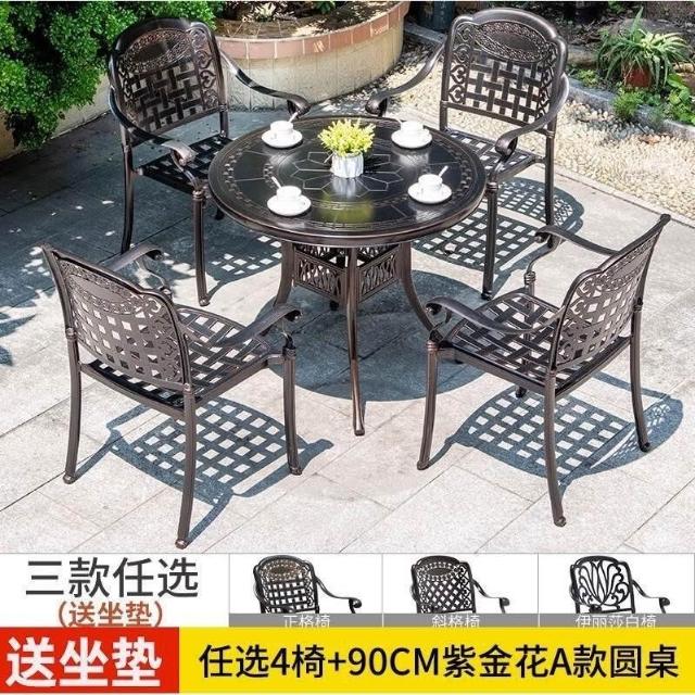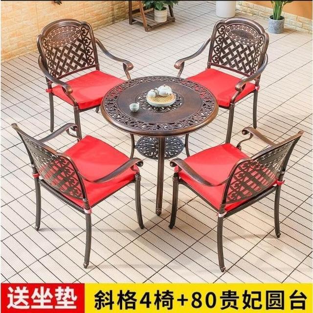 可開發票【免運】戶外桌椅鑄鋁三五件套陽臺花園庭院休閒露天室外防水鐵藝桌椅組閤 休閒桌椅 陽臺小桌椅