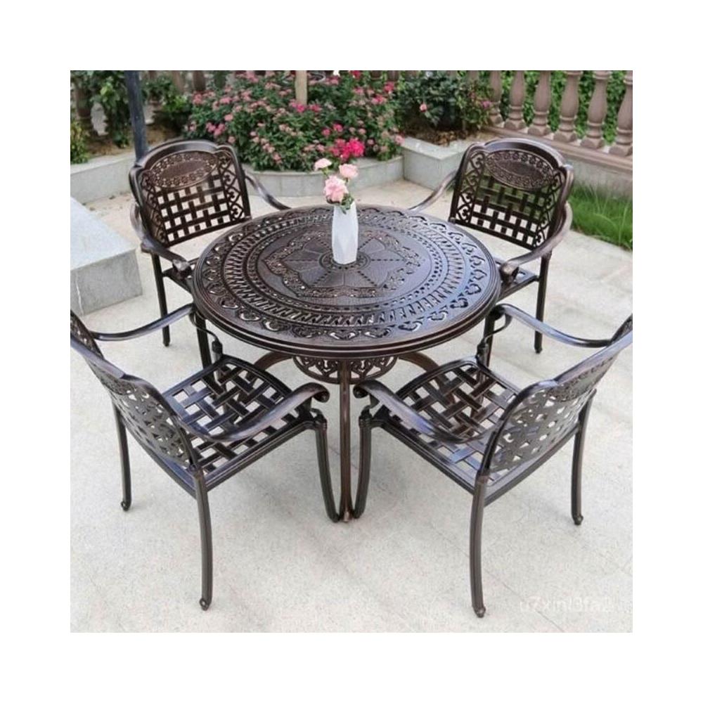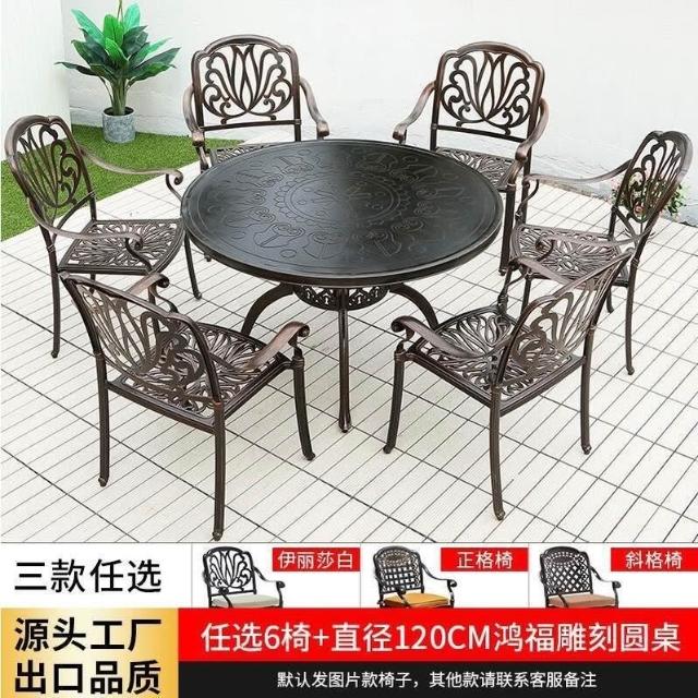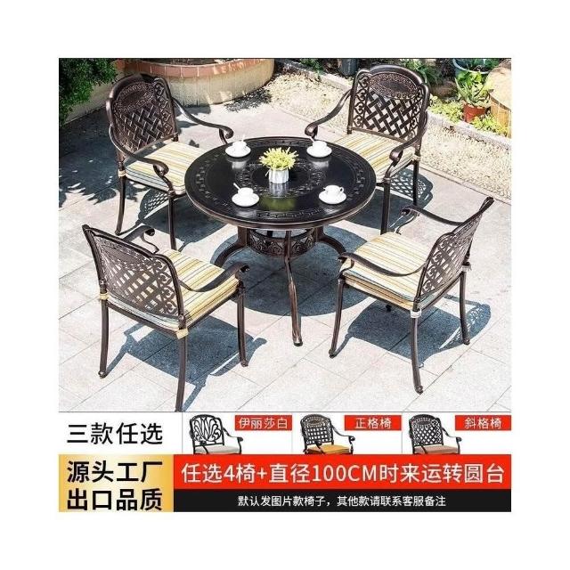 可開發票【免運】戶外桌椅鑄鋁三五件套陽臺花園庭院休閒露天室外防水鐵藝桌椅組閤 休閒桌椅 陽臺小桌椅