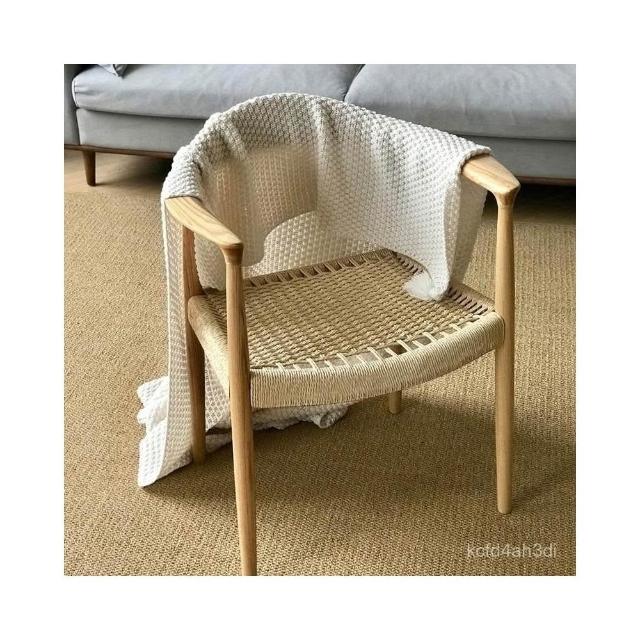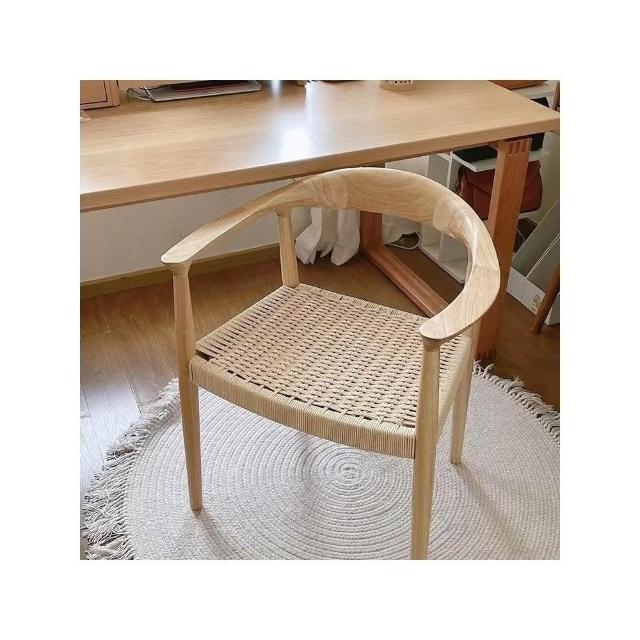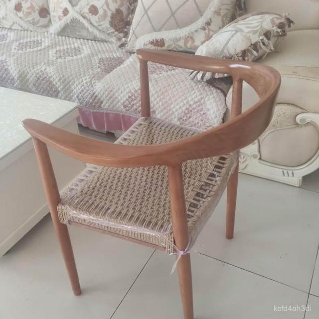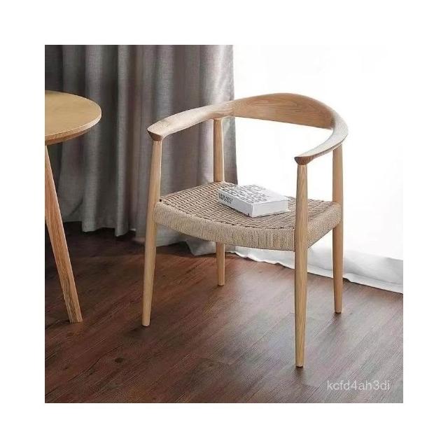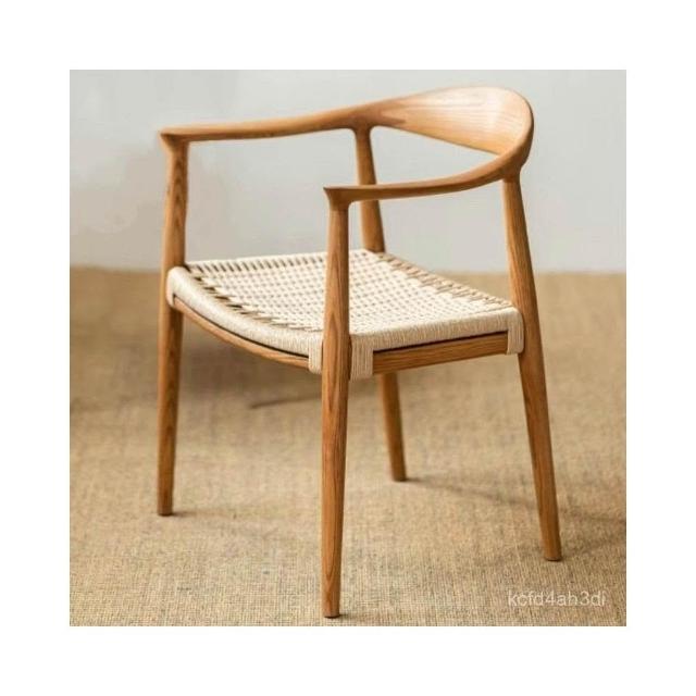 可開發票 /免運/廠傢直銷 肯尼迪總統椅白蠟木餐椅北歐複古扶手椅靠背椅繩編椅書桌椅實木椅