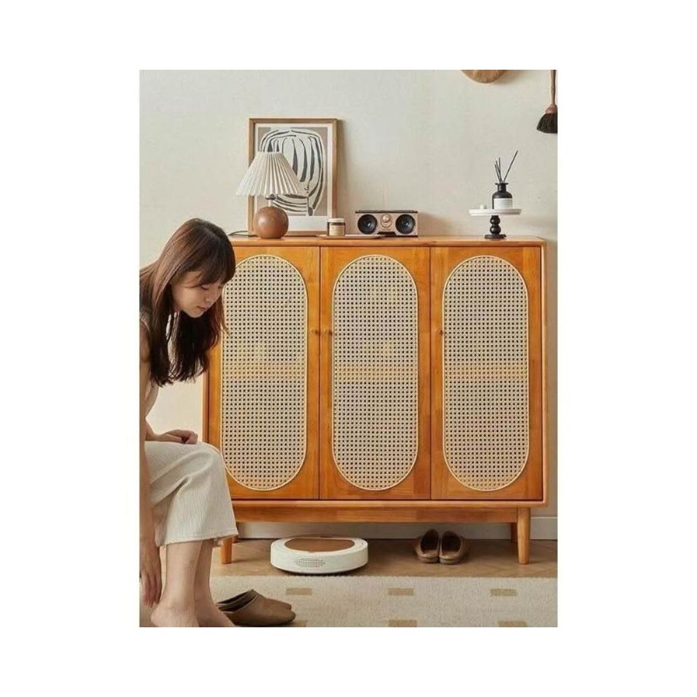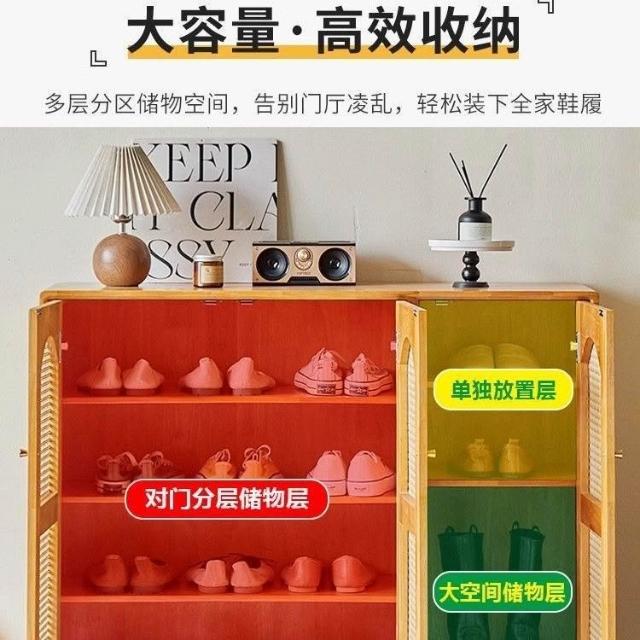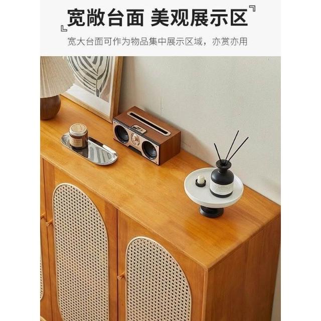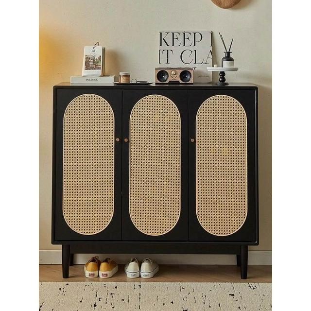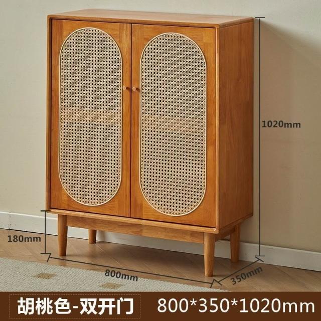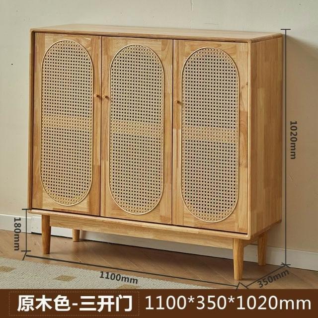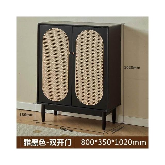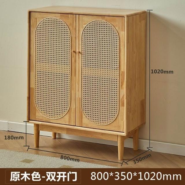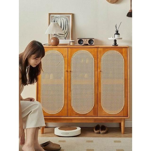 可開發票【免運】实木鞋柜小户型家用置物柜靠墙藤编门收纳柜北欧风落地简约储物柜
