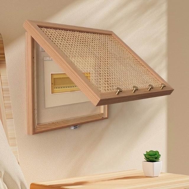 日式電箱裝飾 電錶箱遮擋 藤編 遮醜 帶掛衣鉤 電閘箱 民宿改造掛畫 實木 弱電箱裝飾板 變電箱裝飾蓋電箱美化 牆上裝飾
