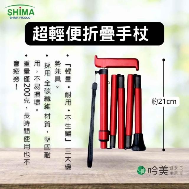 SHIMA 島製作所日本 SHIMA 超輕量 全碳纖維五節折疊 單點休閒杖 外出旅行無負擔 -吟美健康