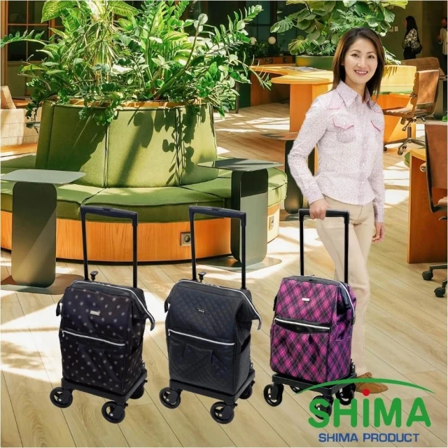 SHIMA 島製作所SHIMA 日本休閒時尚購物側拉車(側推、後拉二用)-大容量口金包 360旋轉靜音輪 讓手腕、肩膀開心放鬆 - 吟美