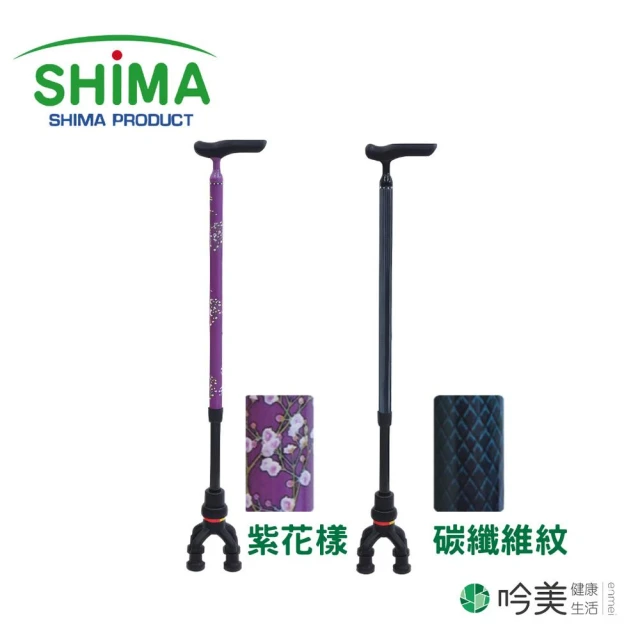 SHIMA 島製作所日本 SHIMA 高科技碳纖維可調角度四腳可動拐杖 腳部自動貼合地面、腳墊防滑設計 四腳穩定斜坡也能穩穩走!- 吟美健康
