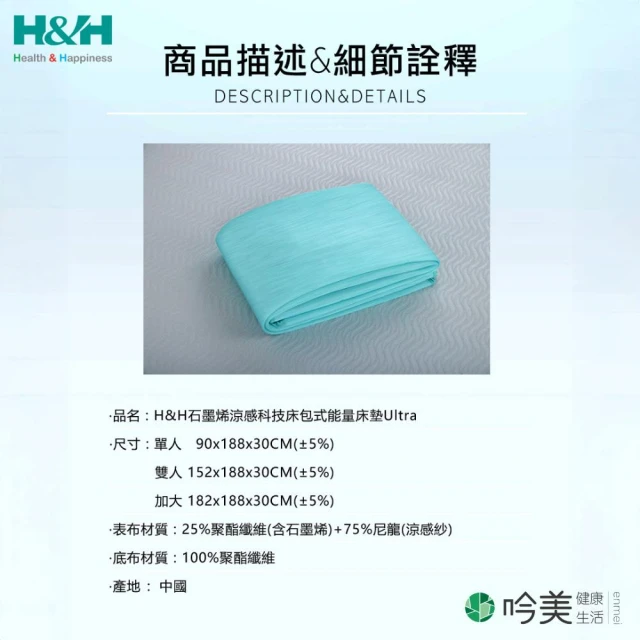H&H 南良南良 H&H 2025 涼感科技床包式能量床墊Ultra 超涼感科技纖維 輕鬆清潔、降溫舒適(不含枕頭套)- 吟美健康