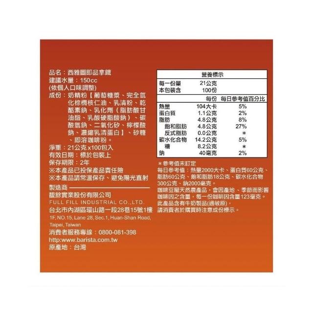 愛的小舖-西雅圖 三合一 即品拿鐵 21公克 X 100入#現貨一筆訂單最多2盒#202707