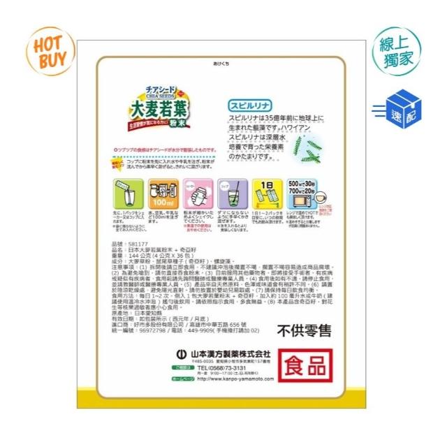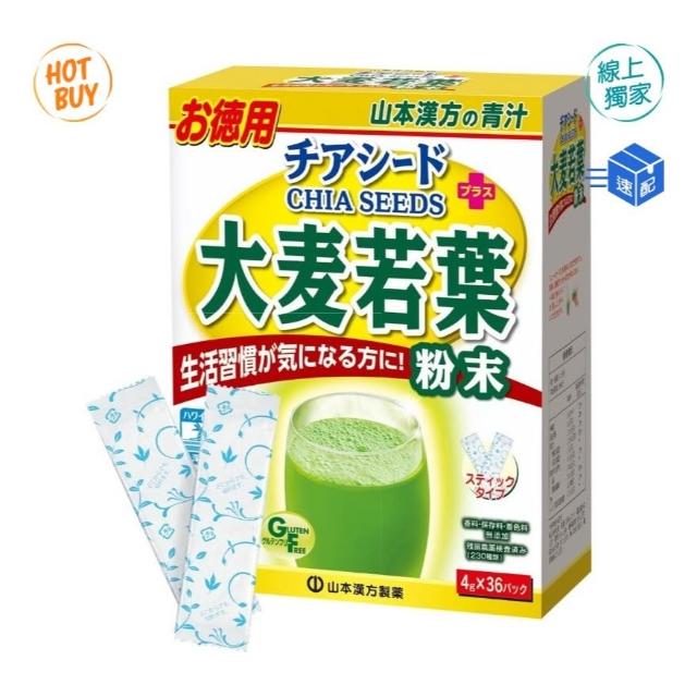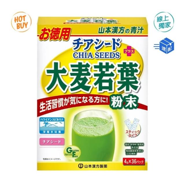 愛的小舖- 山本漢方 日本大麥若葉粉末 + 奇亞籽 144公克(4公克 X 36包) 效期:2028年4月份