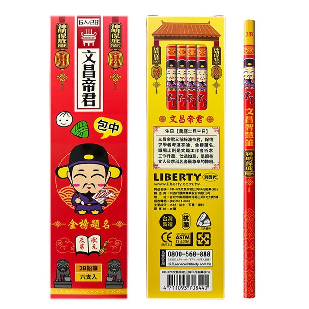 LIBERTY利百代 文昌帝君三角印花2B鉛筆 (一盒/6隻) CB-326 文具|2B鉛筆|金榜題名|文昌帝君