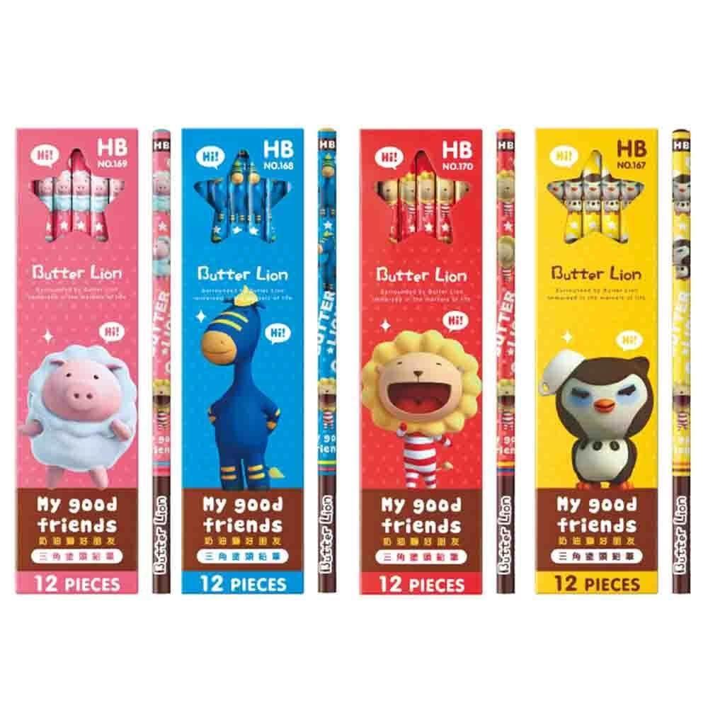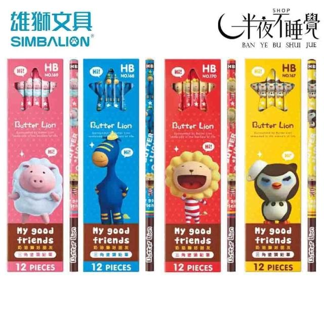 SIMBALION 雄獅文具奶油獅好朋友三角塗頭HB鉛筆 (12支/盒)