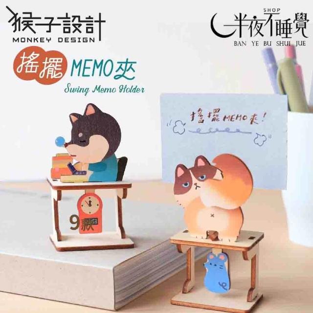 猴子設計搖擺MEMO夾 共9款 萬用卡|DIY|便條紙夾|木製拼圖|辦公室小物|台灣製造