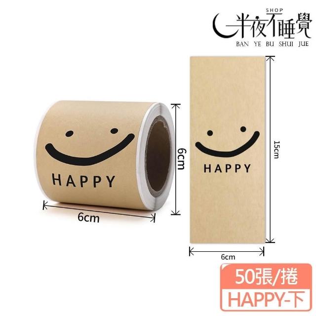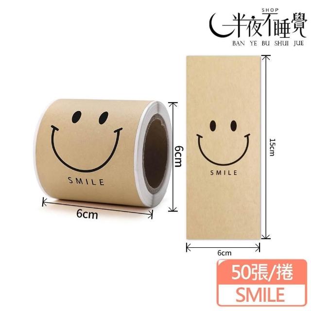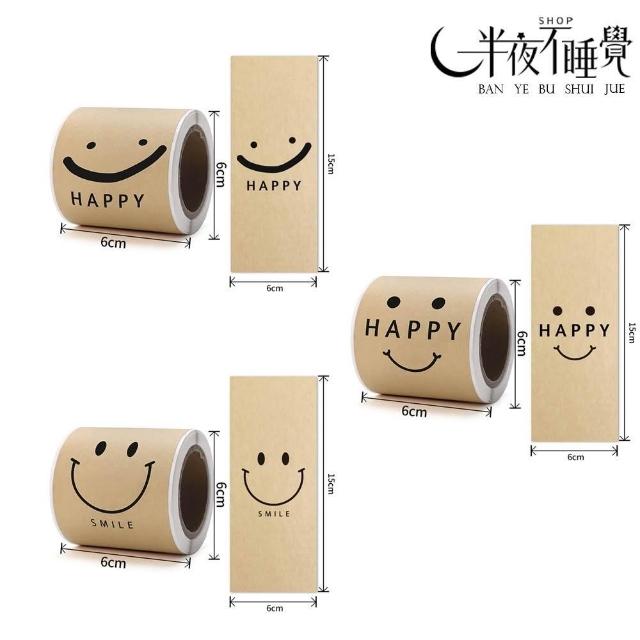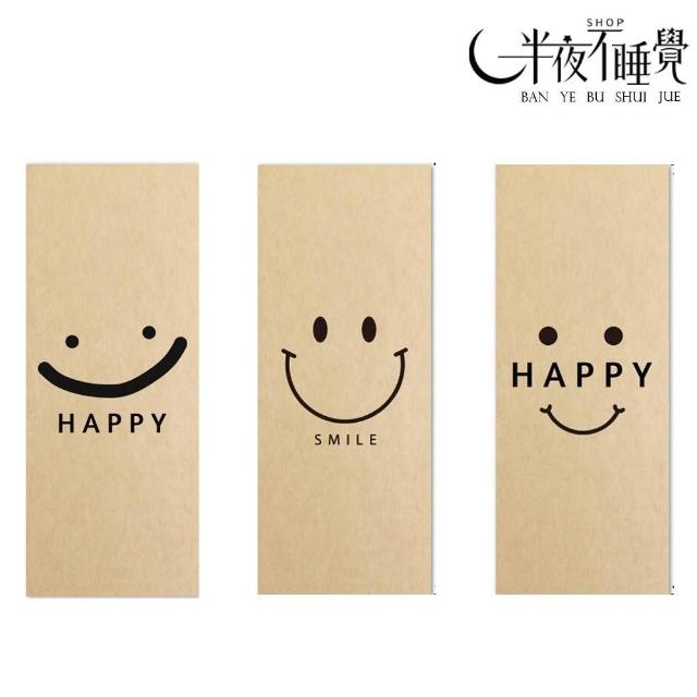 牛皮紙微笑封口貼 6x15cm 50張 大張|牛皮紙貼紙|笑臉貼紙|封口貼紙|包裝貼|飛機盒|禮盒封口