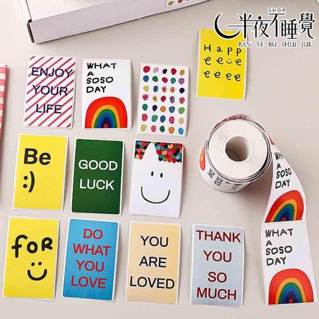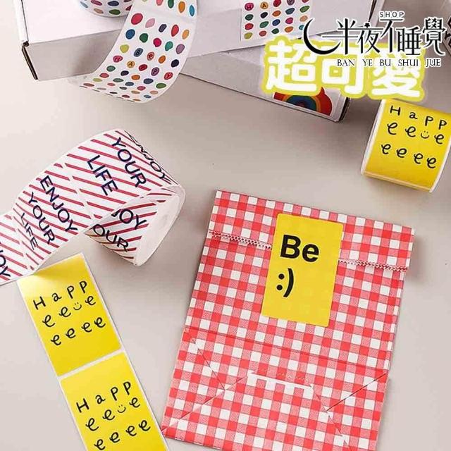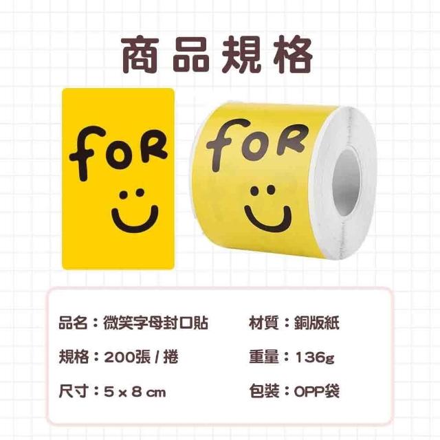 微笑字母封口貼 5x8cm 200張/卷 大張|笑臉貼紙|封口貼紙|包裝貼|飛機盒|禮盒封口|不乾膠