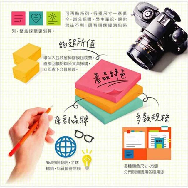 3MPost-it®可再貼便條紙 3x5 (12.7 x 7.5cm) 100張/本 便利貼|狠黏|N次貼