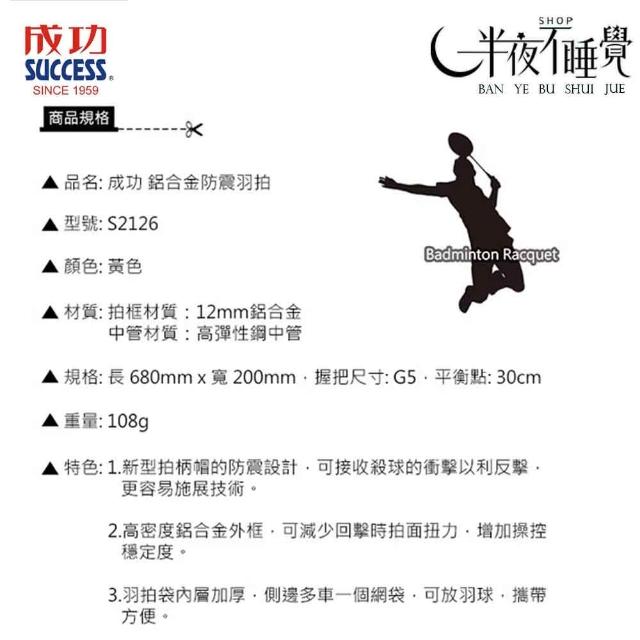 SUCCESS 成功彩色鋁合金羽拍 S2126 羽毛球拍|防震鋁合金羽拍