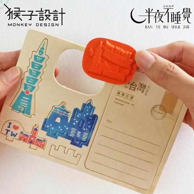 猴子設計印章明信片-共23款 DIY木製拼圖玩具|印章手帳|創意明信片|台灣製造