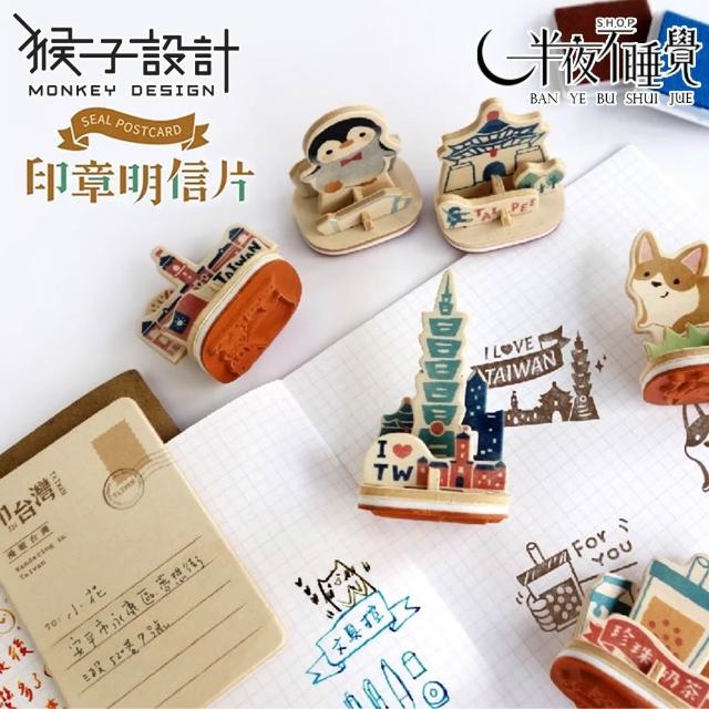 猴子設計印章明信片-共23款 DIY木製拼圖玩具|印章手帳|創意明信片|台灣製造