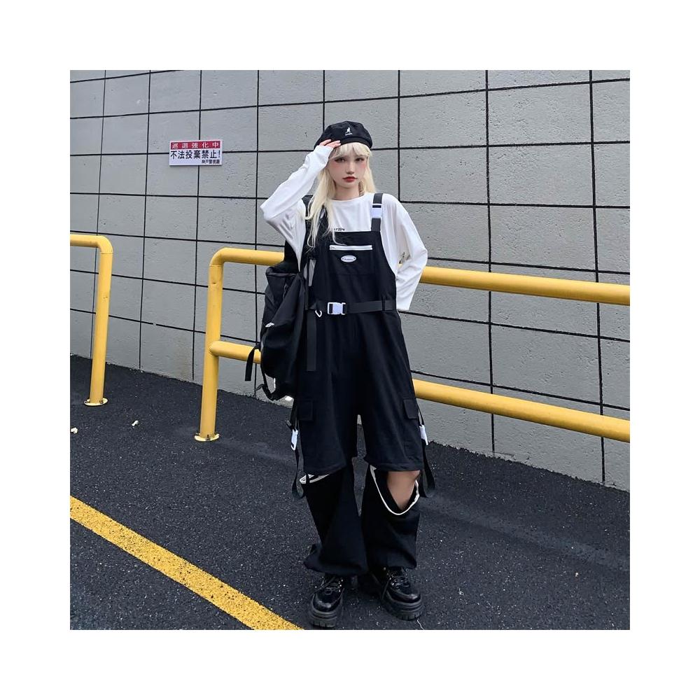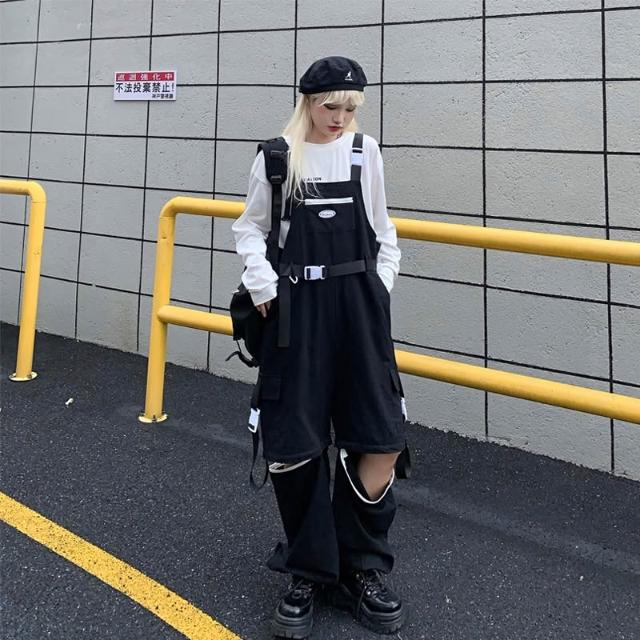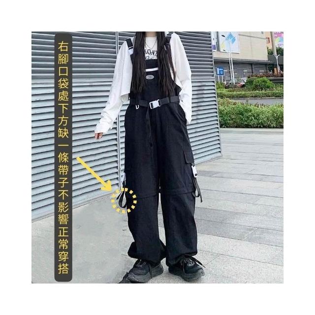 暗黑系 壞壞風 吊帶褲|工裝風闊腿長褲|日韓街舞穿搭必收【穿穿trytry】