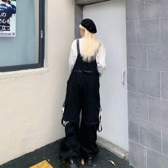 暗黑系 壞壞風 吊帶褲|工裝風闊腿長褲|日韓街舞穿搭必收【穿穿trytry】