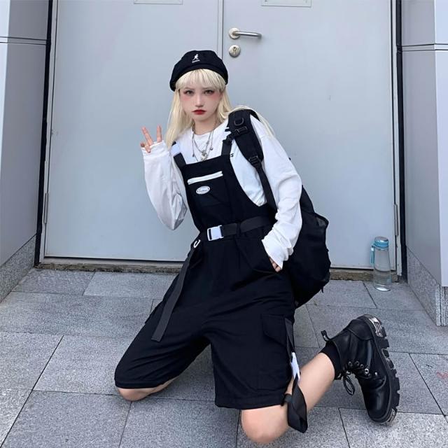 黑系 壞壞風 吊帶褲|工裝風闊腿長褲|日韓街舞穿搭必收【穿穿trytry