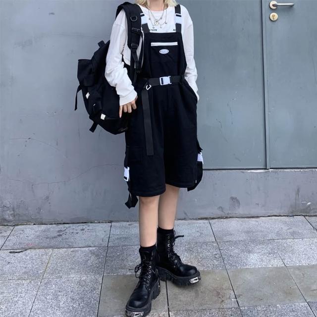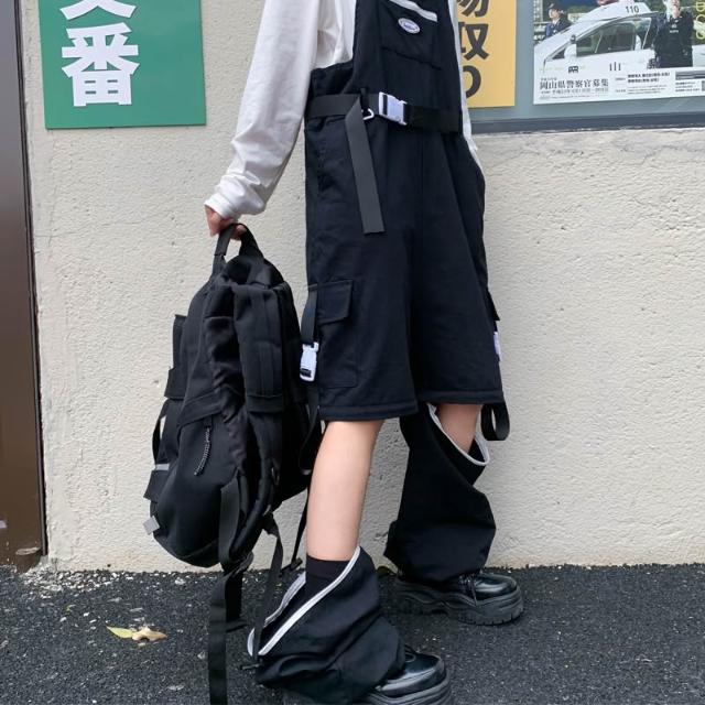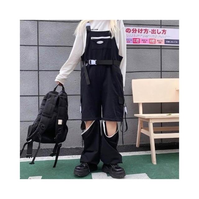暗黑系 壞壞風 吊帶褲|工裝風闊腿長褲|日韓街舞穿搭必收【穿穿trytry】