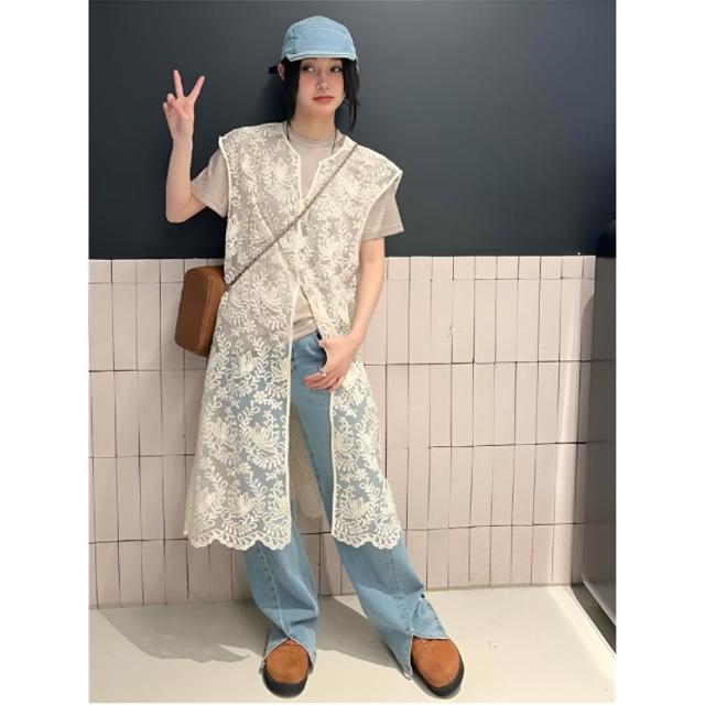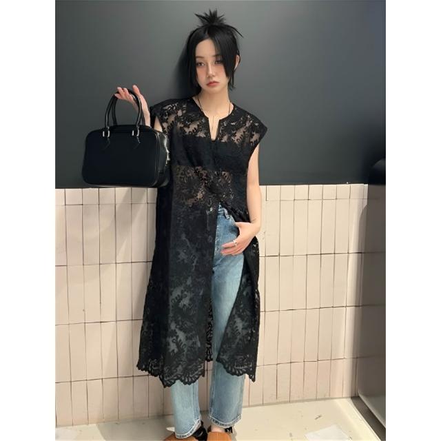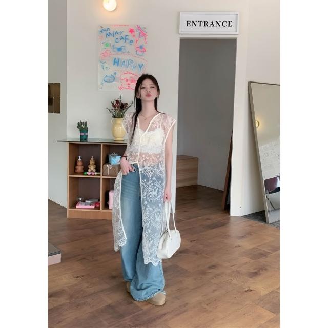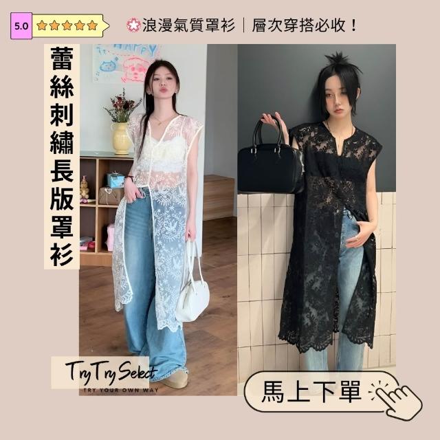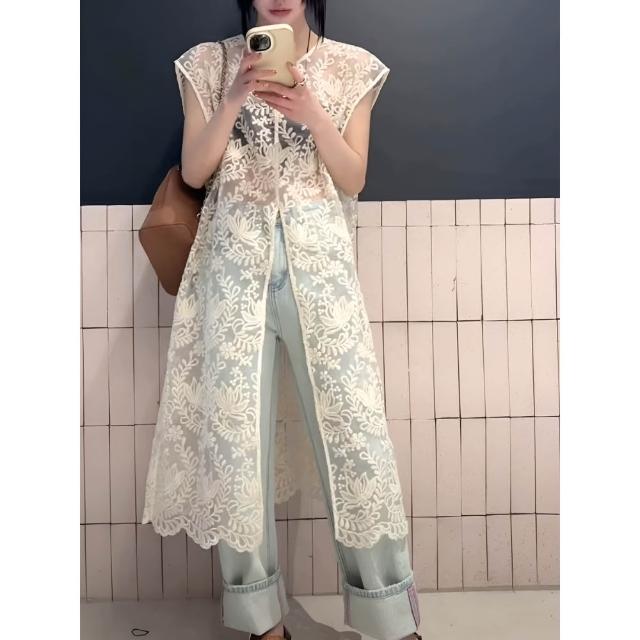 � 蕾絲刺繡透膚洋裝 連身裙 開襟罩衫 背心套裝 疊穿性感穿搭【穿穿trytry