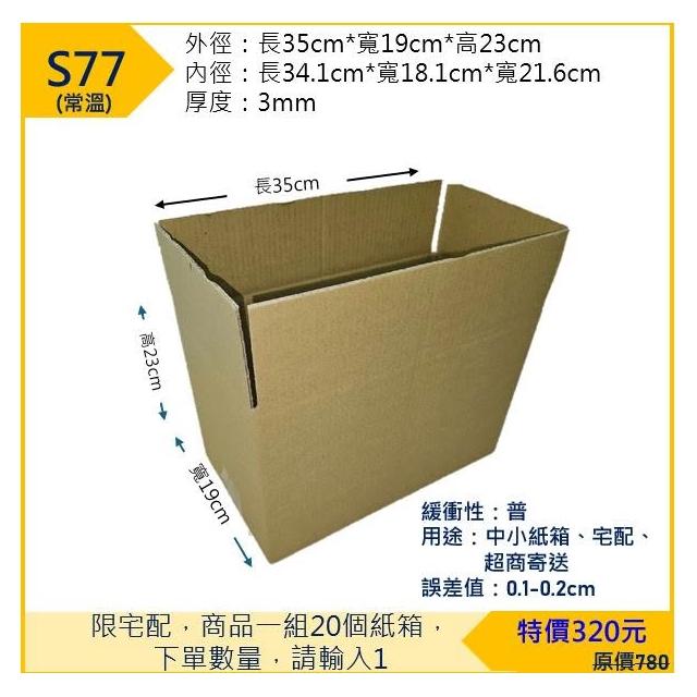 店到店出貨專用紙箱 S77常溫包裹寄件紙箱/20入 台灣製造(35*19*23x厚0.3cm) 超商店取