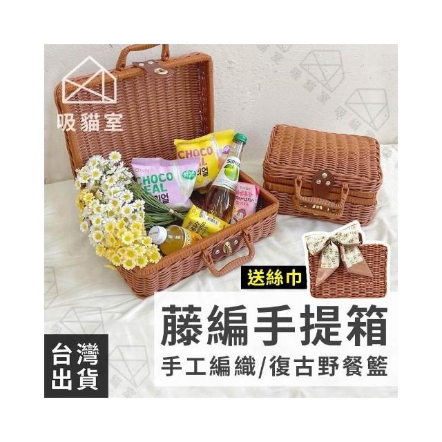 吸貓室藤編手提箱 編織手提箱 藤編收納籃 藤編箱 野餐籃 鄉村風 野餐 出遊 野餐道具 拍照道具 交換禮物