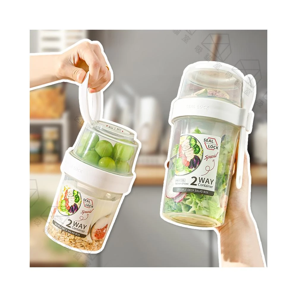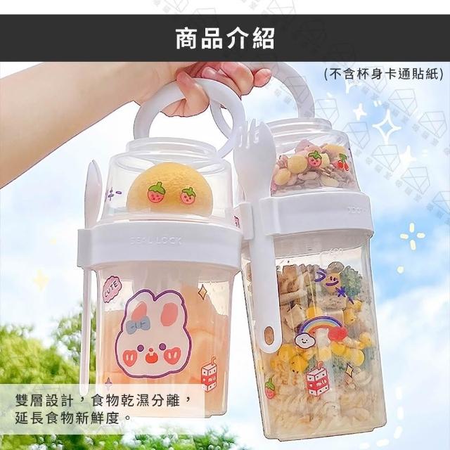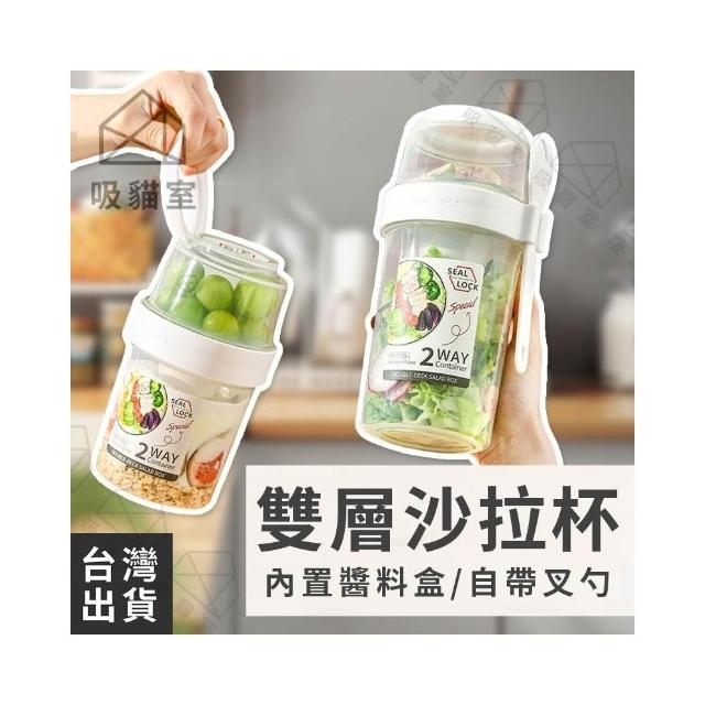 吸貓室雙層沙拉杯 環保杯 優格杯 附餐具 早餐杯 保鮮杯 燕麥杯 沙拉杯 水果杯 麥片杯 酸奶杯 優格碗