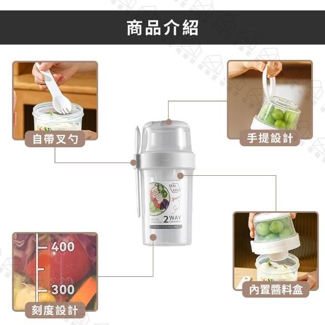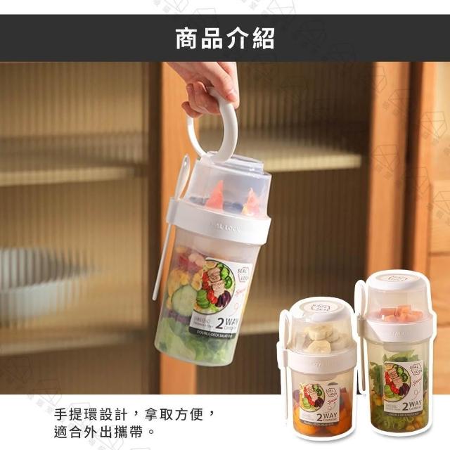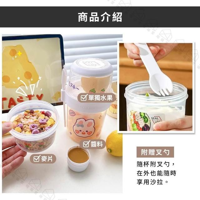 吸貓室雙層沙拉杯 環保杯 優格杯 附餐具 早餐杯 保鮮杯 燕麥杯 沙拉杯 水果杯 麥片杯 酸奶杯 優格碗