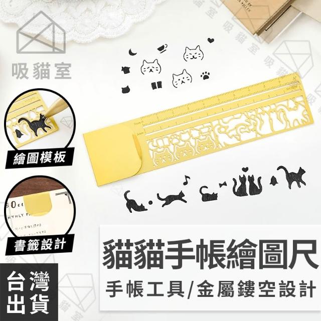 吸貓室繪圖尺 尺 手帳尺 貓咪造型 金屬書籤 書籤尺 模板尺 造型尺 金屬尺 圖形尺 書籤 多功能繪圖尺