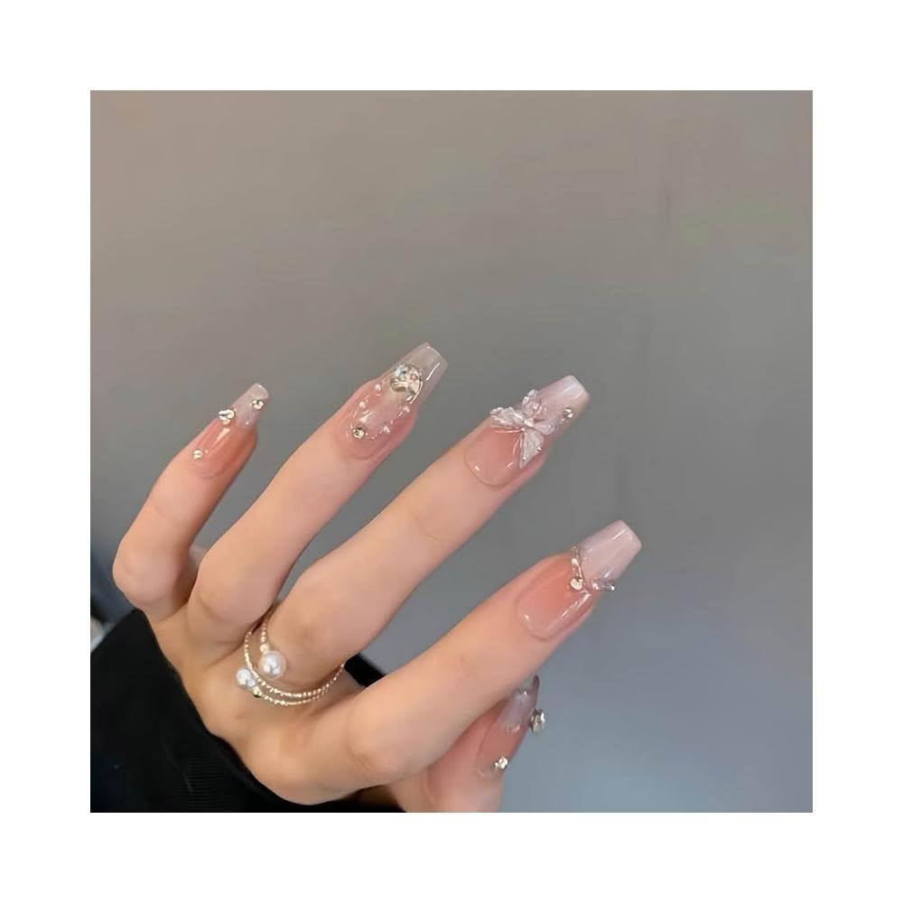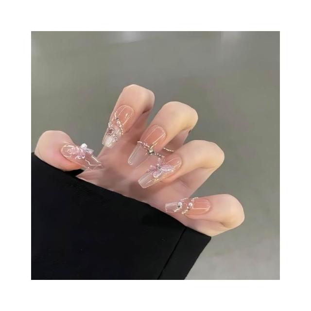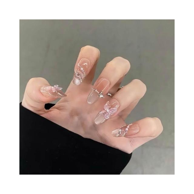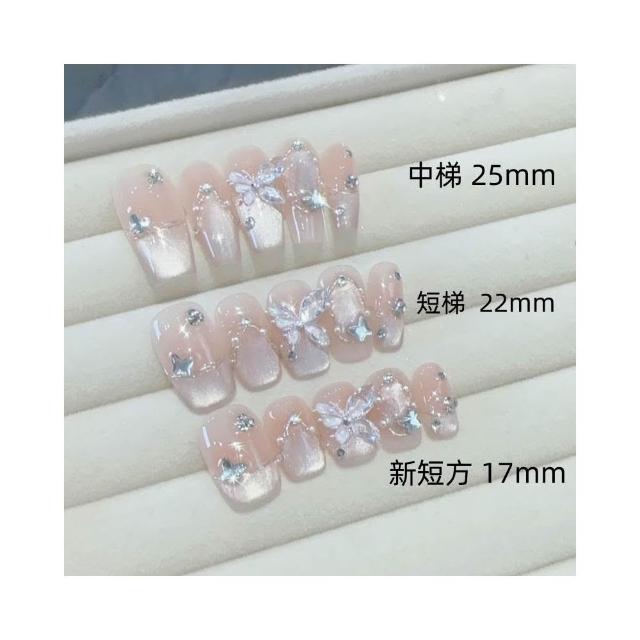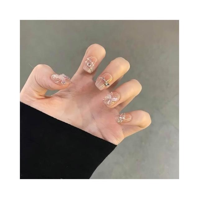 梵花 純手工訂製穿戴甲新娘結婚穿戴甲美甲貼片蝴蝶貓眼鑽石假指甲指甲貼