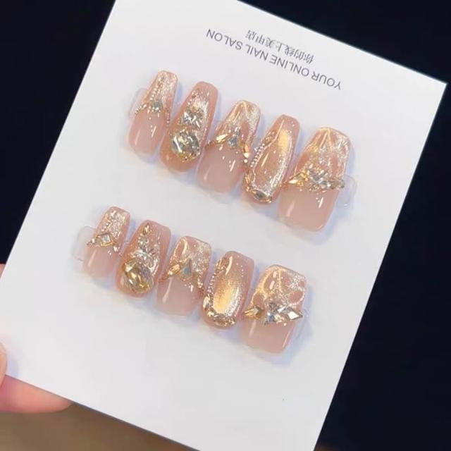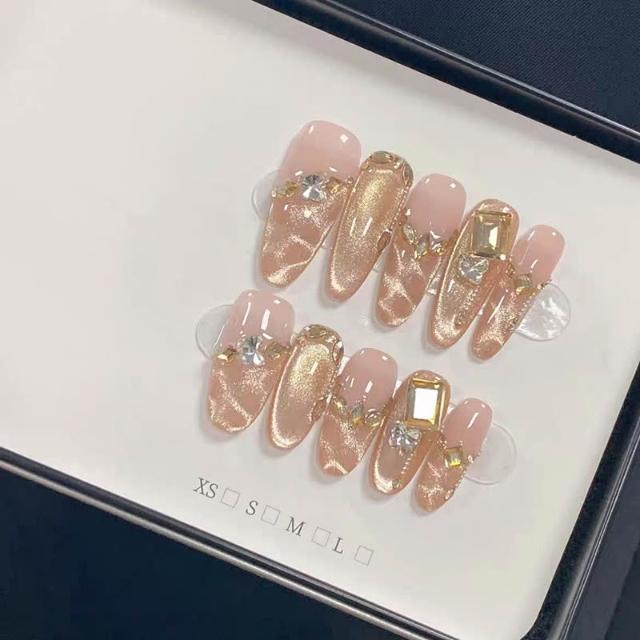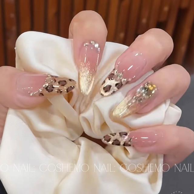 梵花 穿戴甲轻奢爆闪猫眼豹纹美甲金色美甲假指甲高级感穿戴式显白美甲