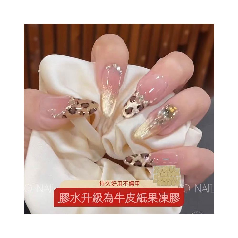 梵花 穿戴甲轻奢爆闪猫眼豹纹美甲金色美甲假指甲高级感穿戴式显白美甲