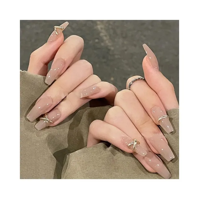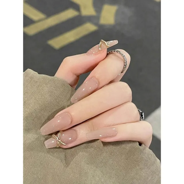 梵花 手工訂製假指甲貼片成品簡約裸色燕麥拿鐵色高級感氣質穿戴甲可拆指甲貼