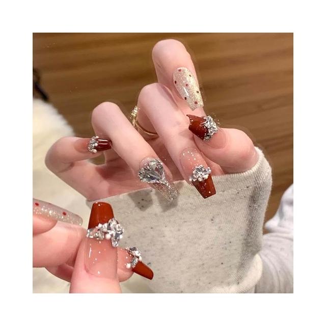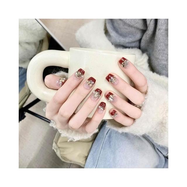 梵花 手工穿戴甲法式新年紅爆閃碎鑽高級感美甲中長梯顯白戰甲貼片指甲貼