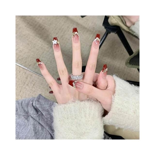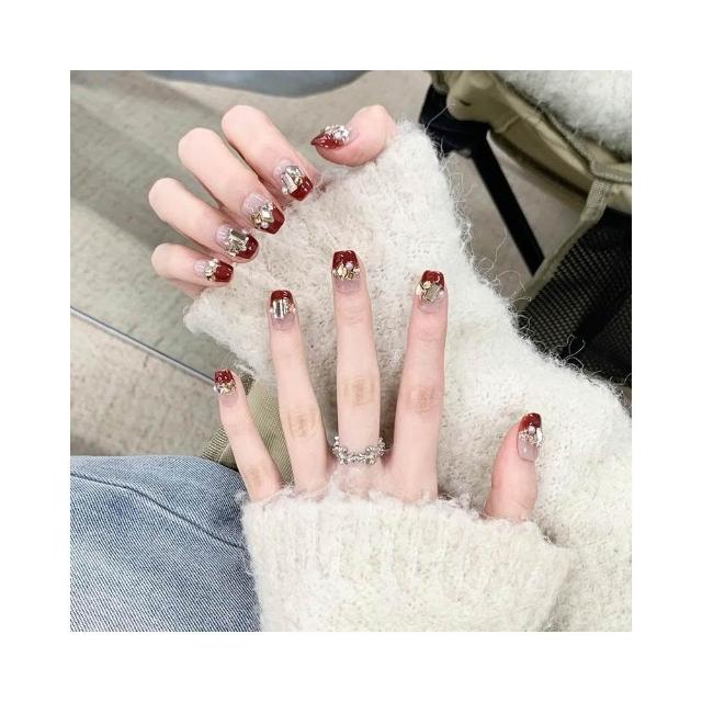 梵花 手工穿戴甲法式新年紅爆閃碎鑽高級感美甲中長梯顯白戰甲貼片指甲貼