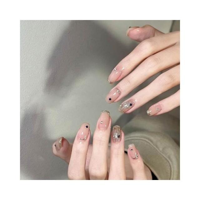 梵花 ins清冷感高級灰美甲穿戴甲中長冰透漸變腮紅帶鑽顯白色假指甲片指甲貼